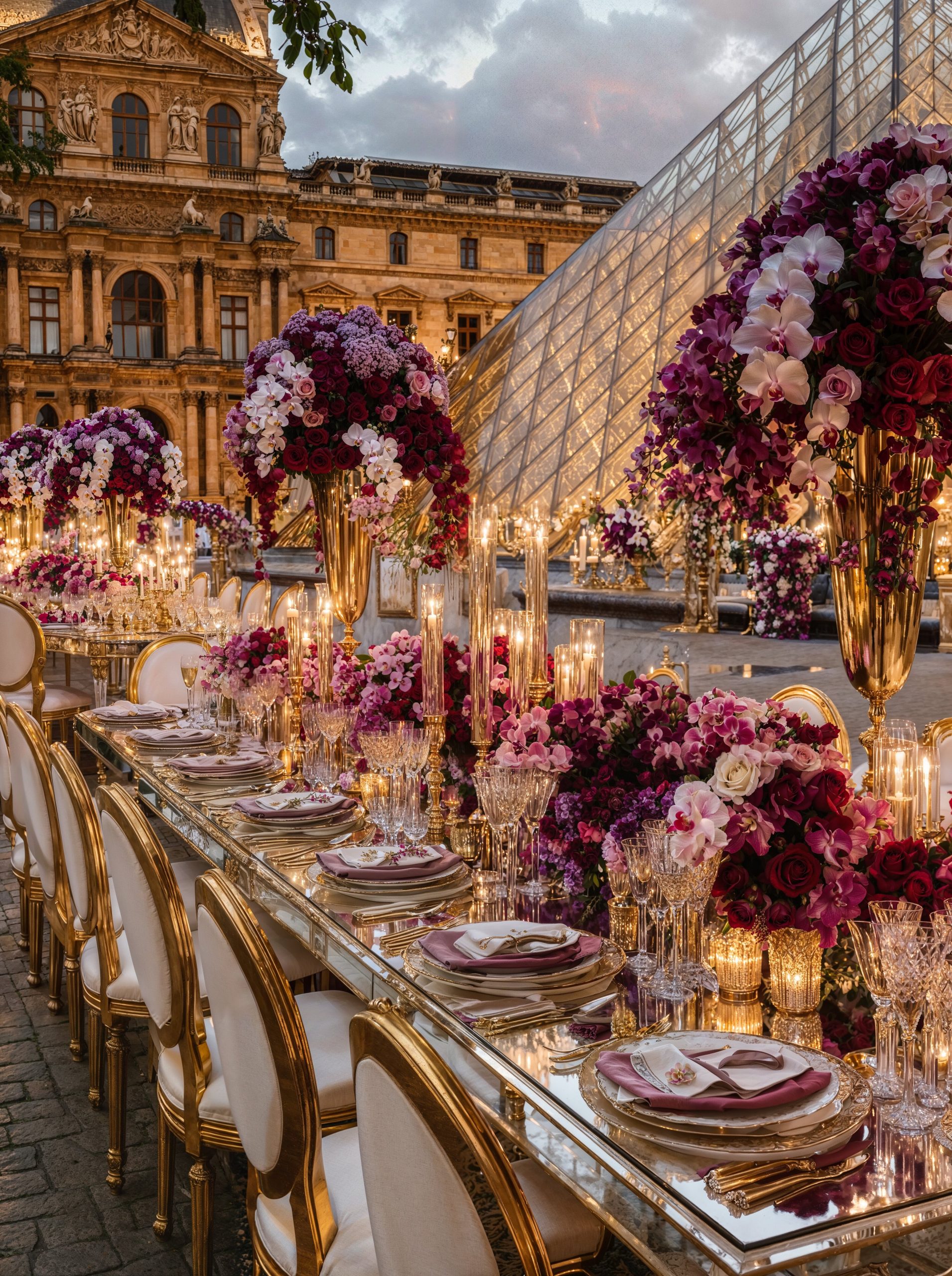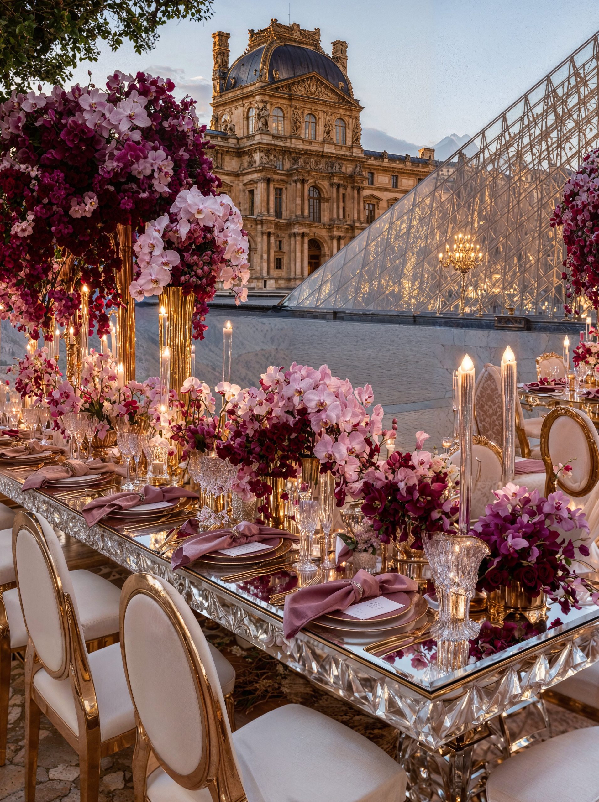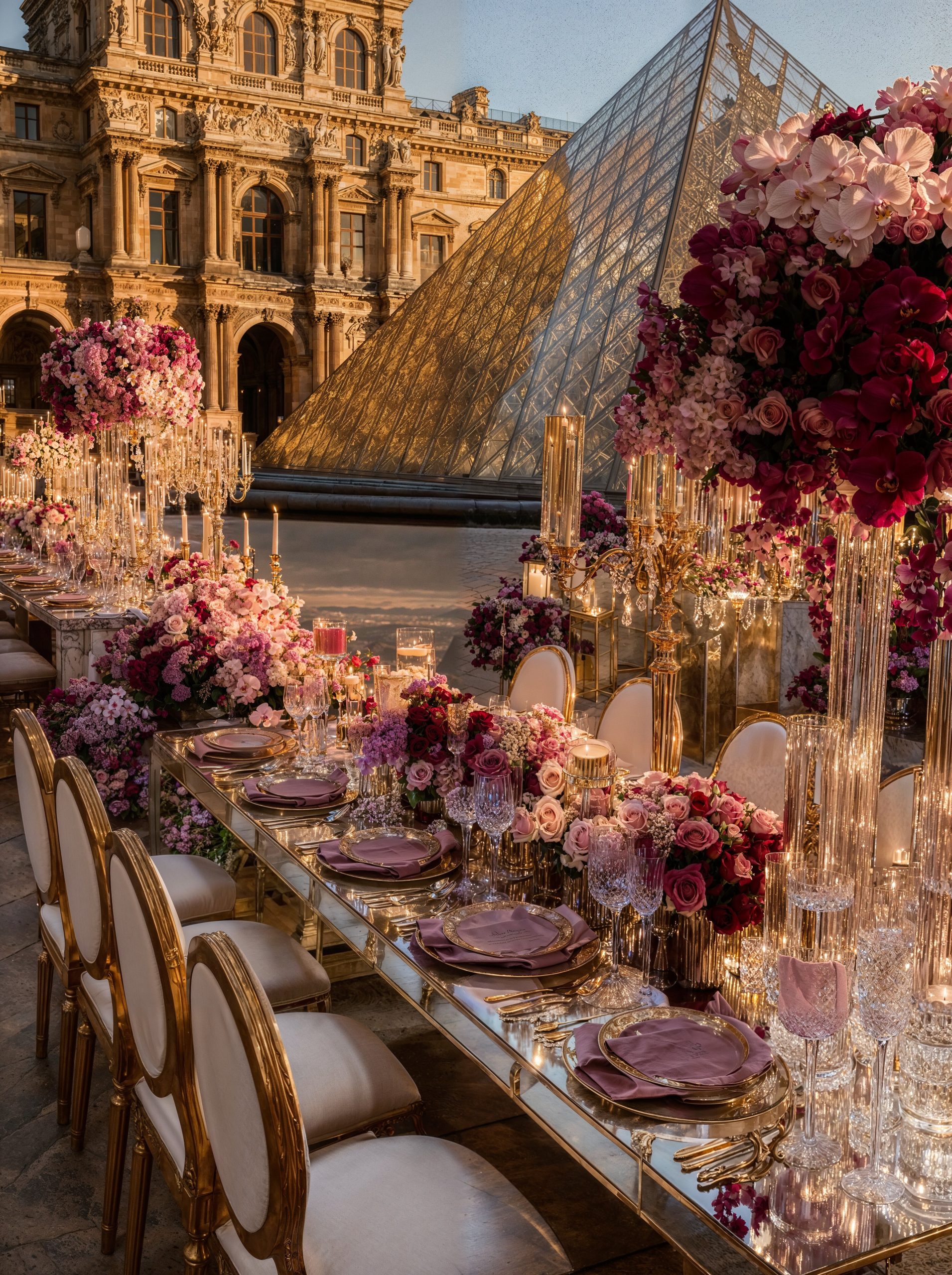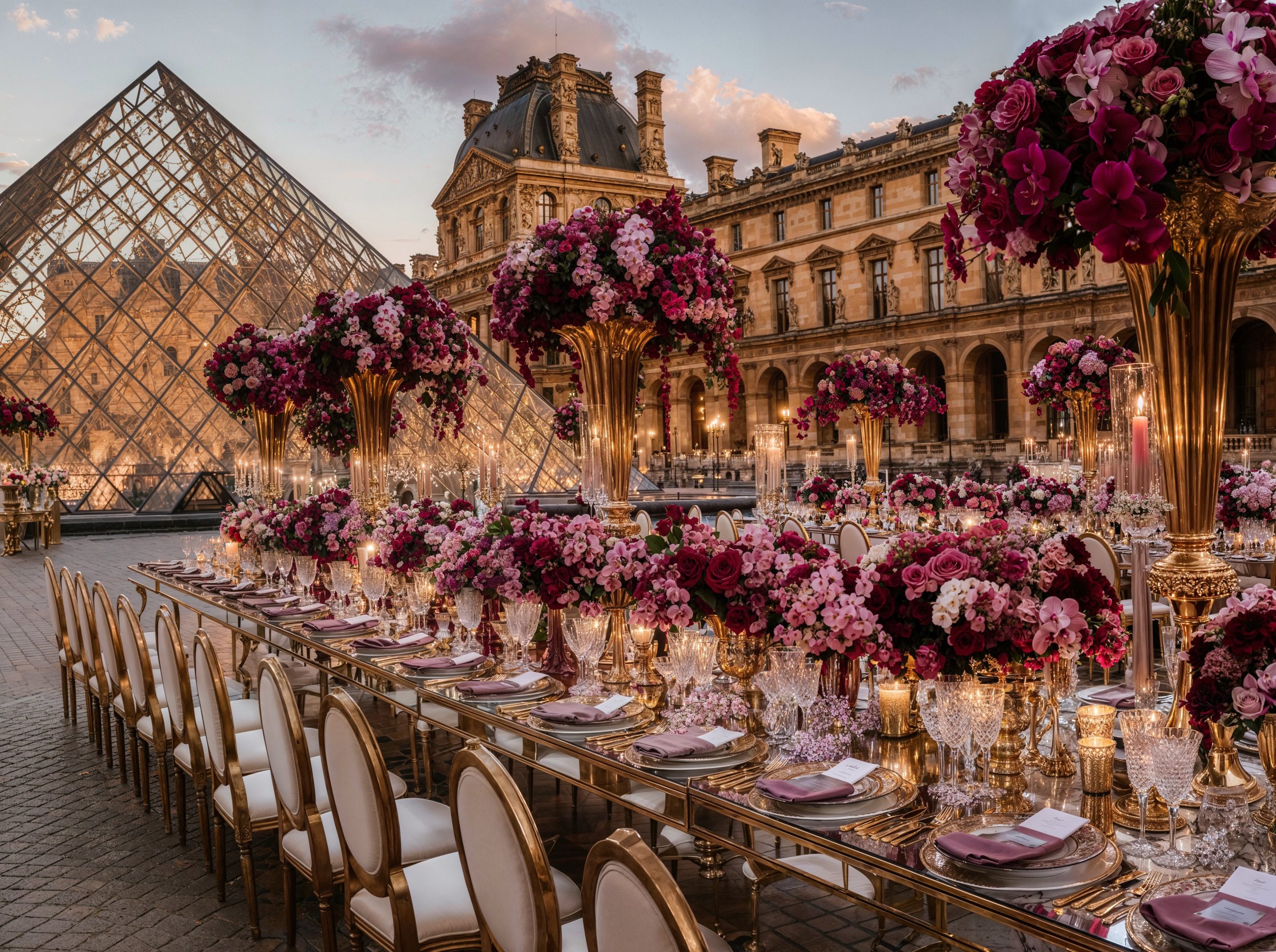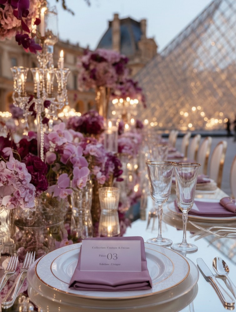 Facing the Louvre, in the heart of Paris, love unfolded within a majestic floral setting. Opulent arrangements in soft mauve, delicate rose, and deep purple tones framed the moment with effortless sophistication. In the City of Light, every detail felt timeless. The flowers echoed the grandeur of Parisian architecture, the palette softened the iconic surroundings, and the scene became unforgettable, a celebration of beauty, emotion, and refinement for a truly stunning couple. A Paris wedding, iconic and eternal. Where romance, art, and luxury meet.