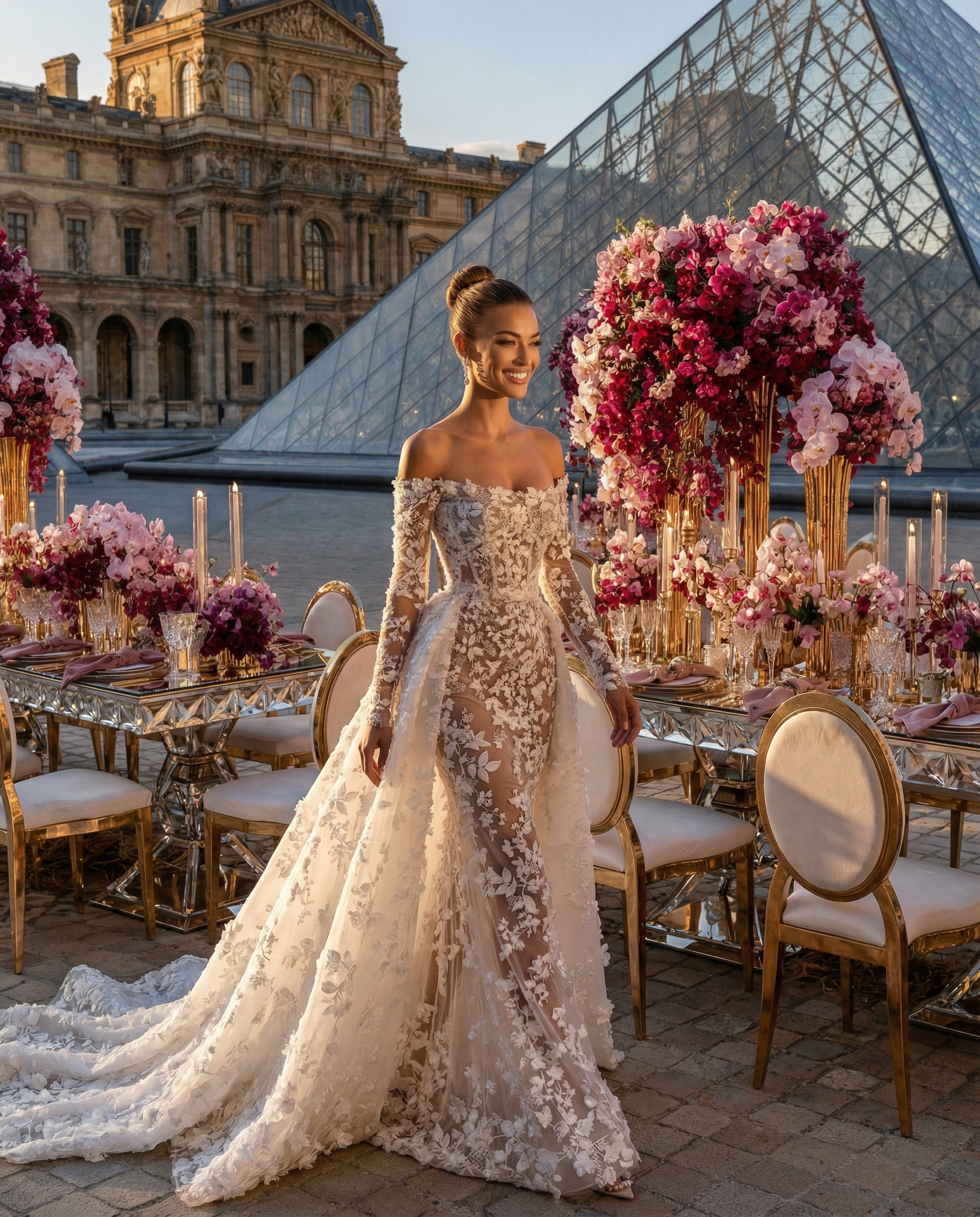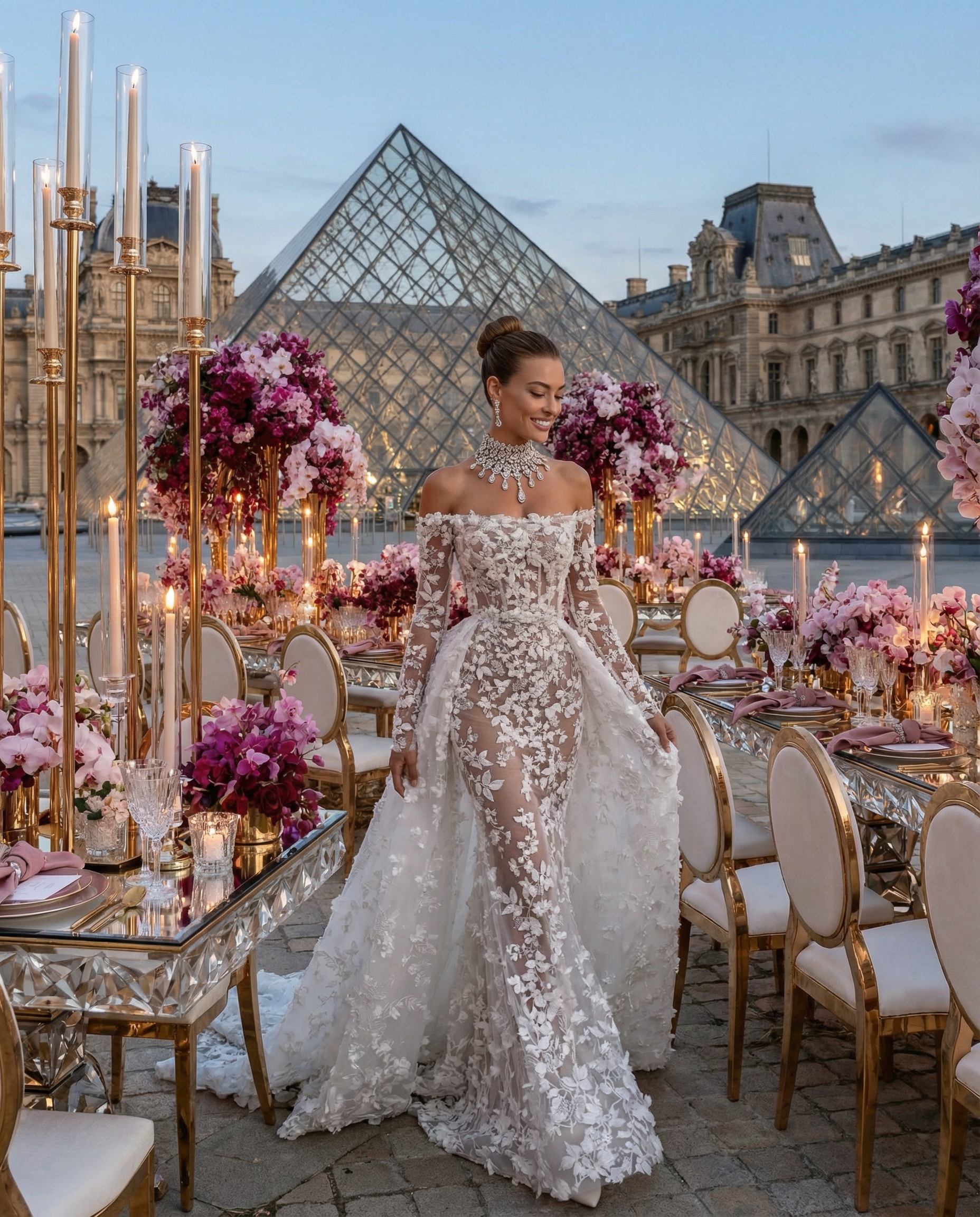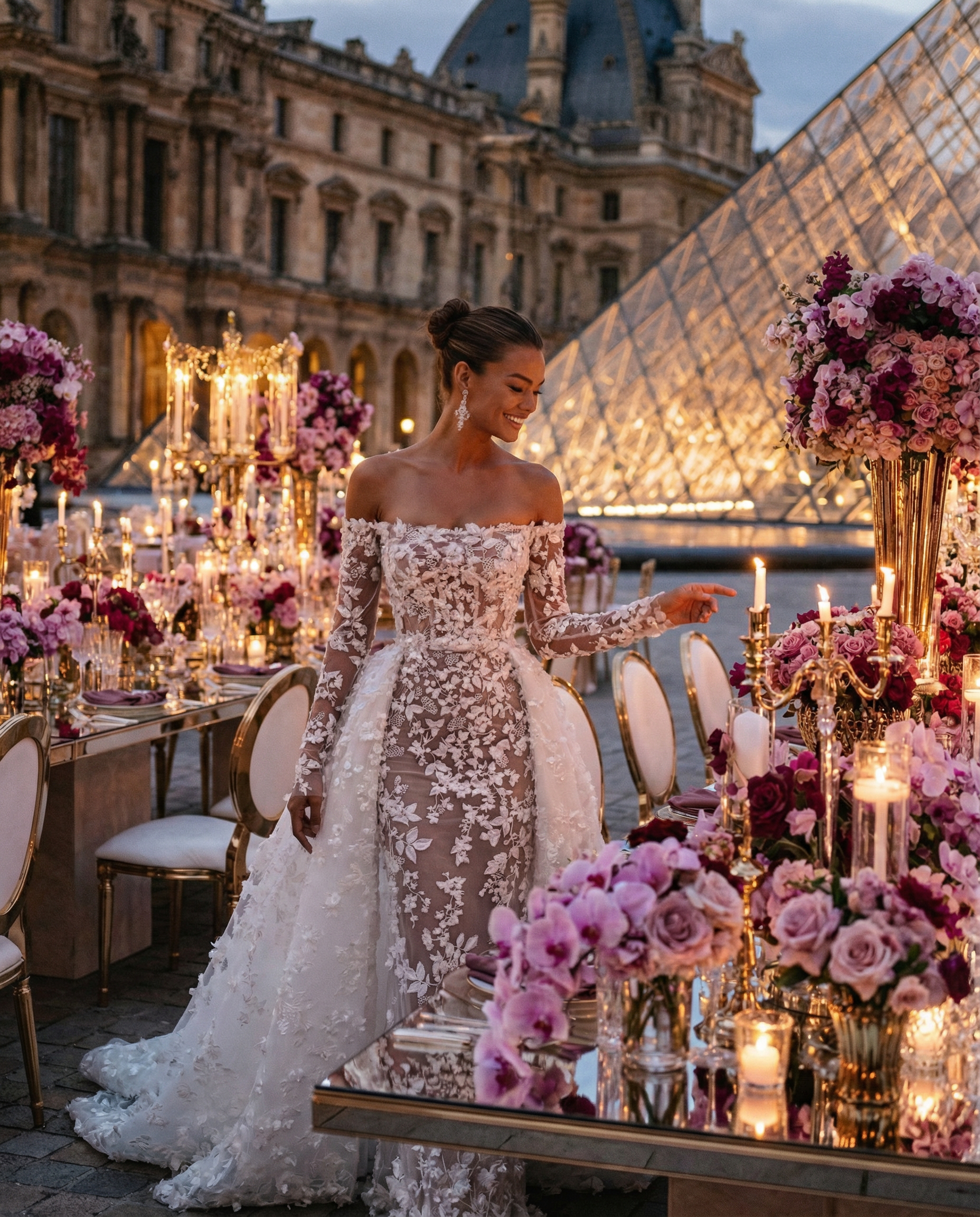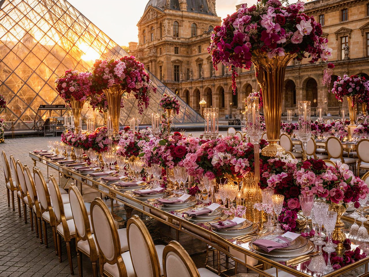 Facing the Louvre, in the heart of Paris, love unfolded within a majestic floral setting. Opulent arrangements in soft mauve, delicate rose, and deep purple tones framed the moment with effortless sophistication. In the City of Light, every detail felt timeless. The flowers echoed the grandeur of Parisian architecture, the palette softened the iconic surroundings, and the scene became unforgettable, a celebration of beauty, emotion, and refinement for a truly stunning couple. A Paris wedding, iconic and eternal. Where romance, art, and luxury meet.